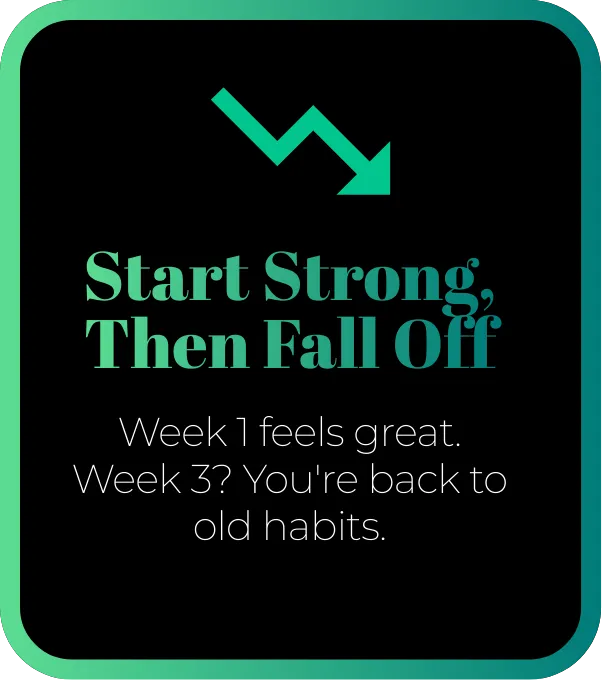 Most people notice changes within 7–14 days. You'll feel more energized within the first week, and visible changes typically follow within 2–3 weeks of consistent effort.